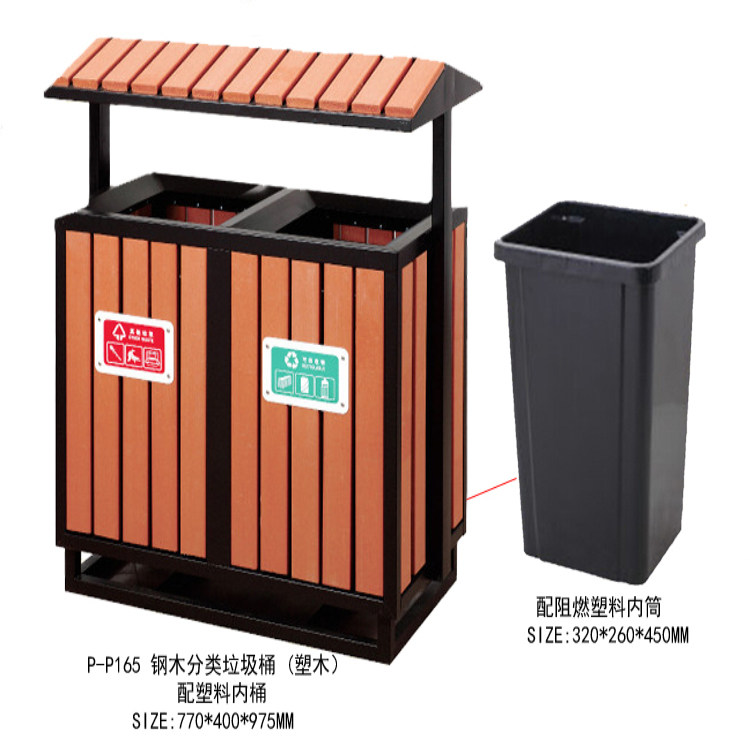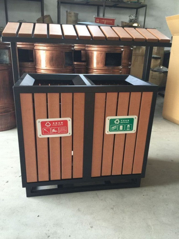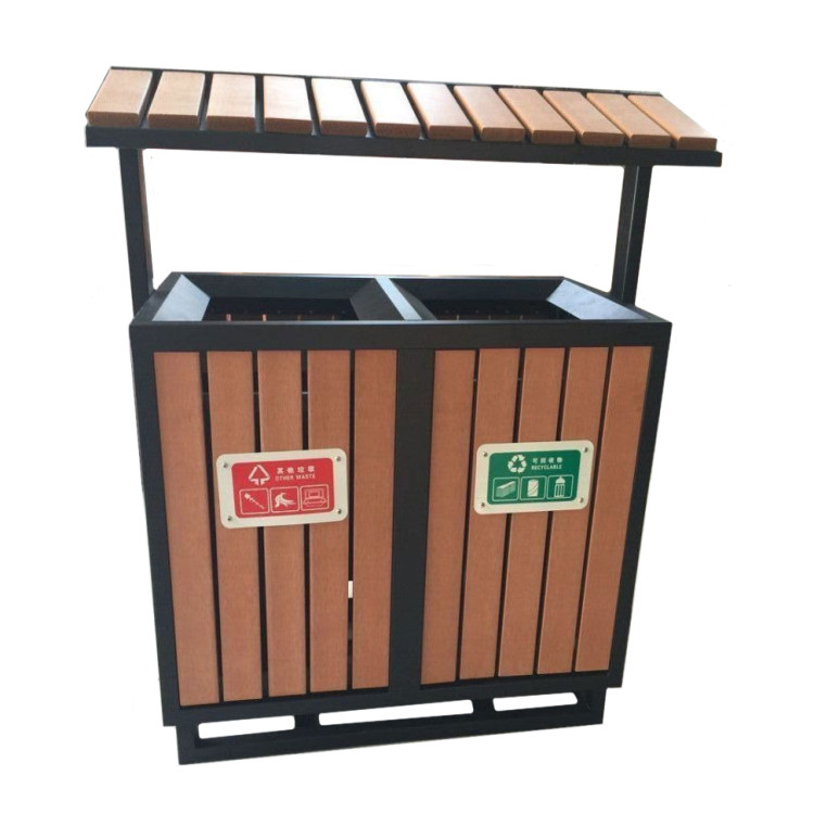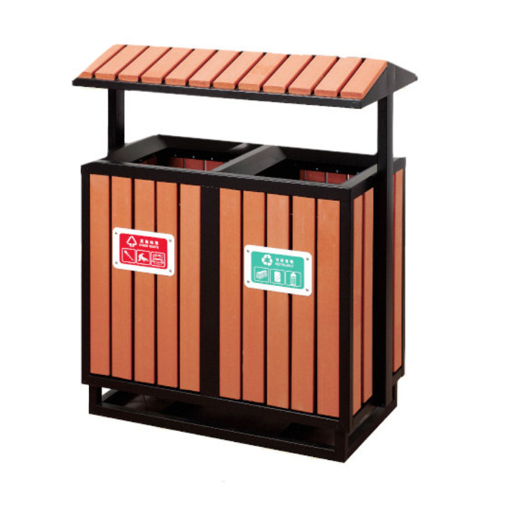 Garden Forest Type Steel Plastic Wood Sorting Garbage Bin Outdoor Sanitation Dustbin Tourist Scenic Spot Fruit Leather Case Wooden Strips