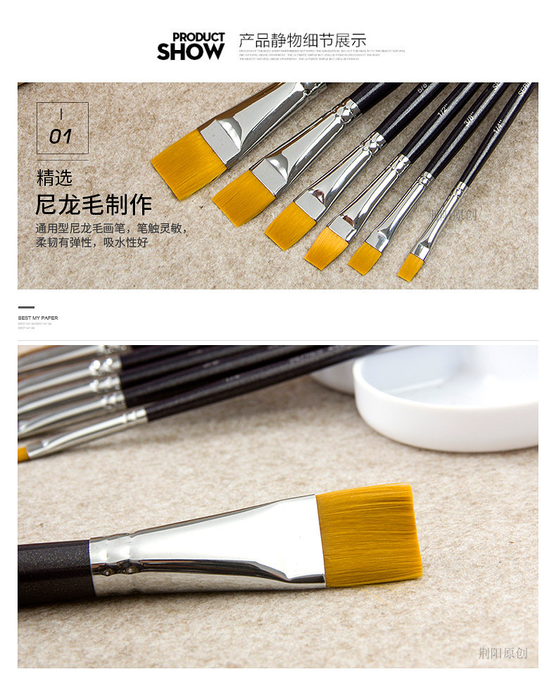 New Concept Short Pole Flat Head 202 Tip 200 Nylon Gross Design Pattern Pen Watercolor Pen Propylene Oil Paintbrush