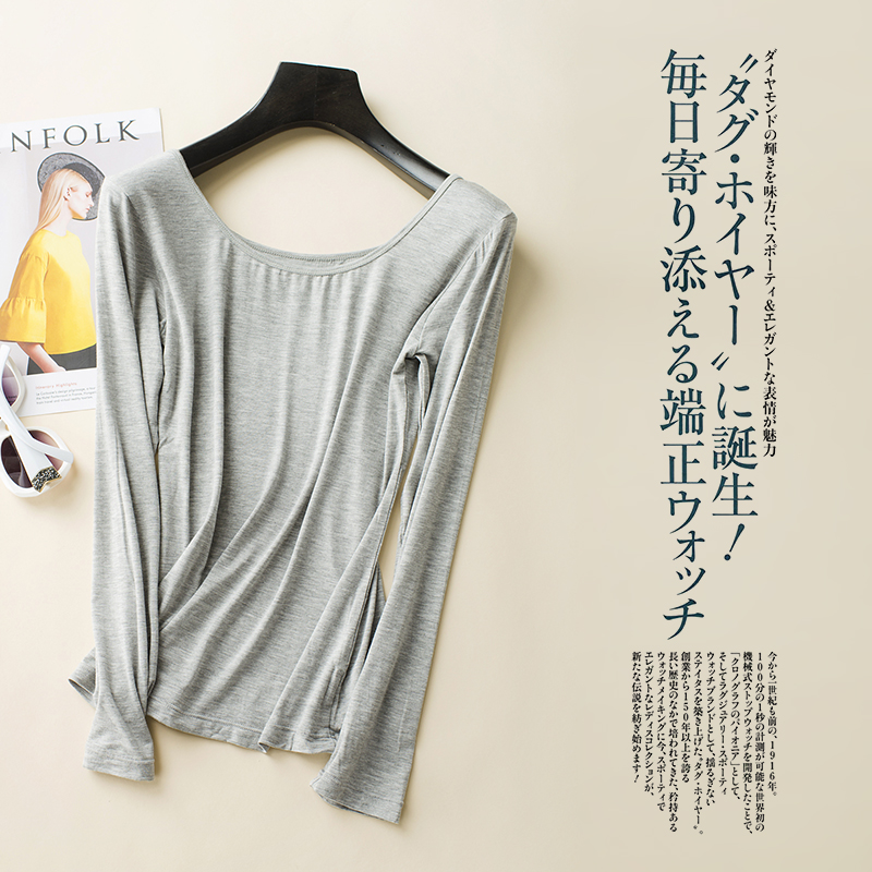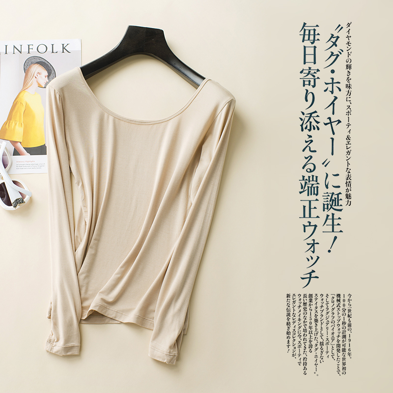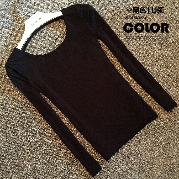 Spring Autumn Thin style Modale beat undershirt woman long sleeve low collar U collar tight collar tight gel fiber lingerie autumn coat large size T-shirt