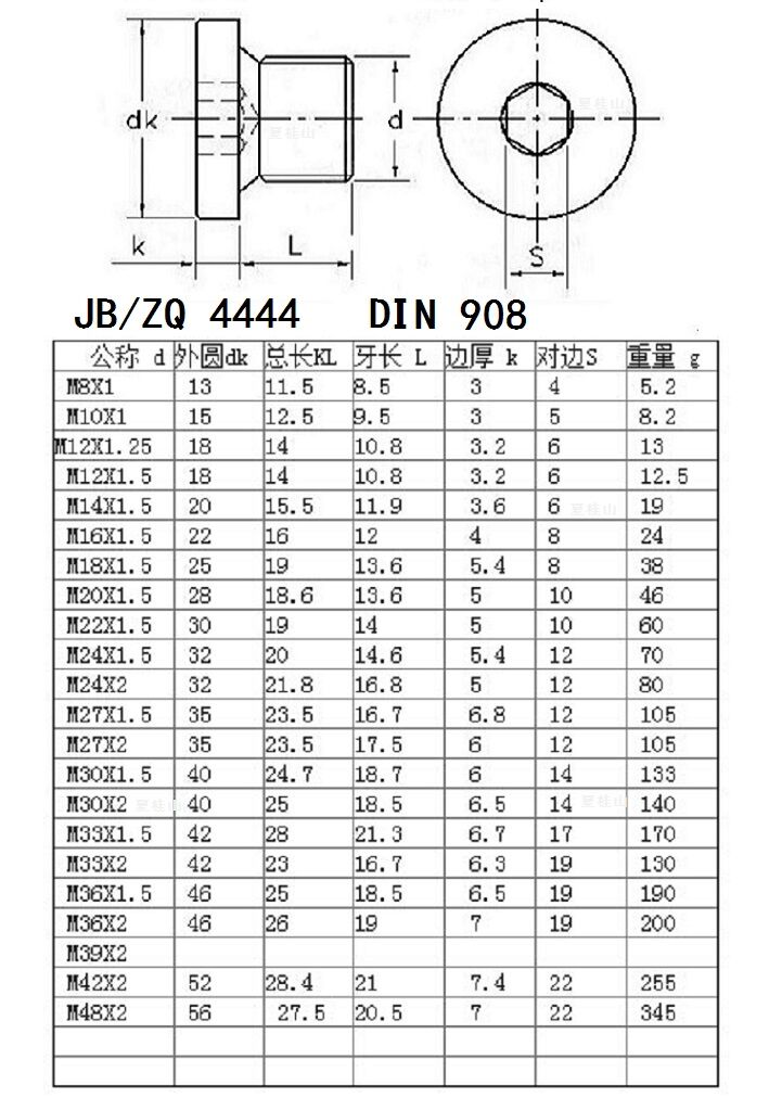 Hydraulic black carbon steel flanged hexagon oil plug Choke plug M8M10M12M14M16M18M20M22M27M30