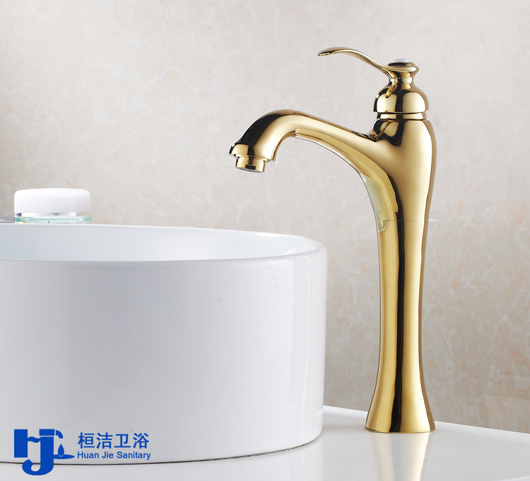 European gold copper basin faucet Hot and cold washbasin washbasin counter basin washbasin antique faucet high
