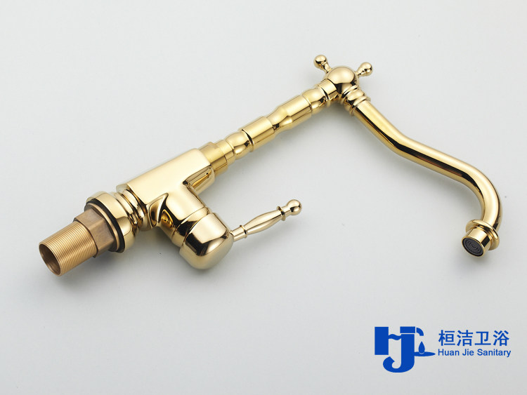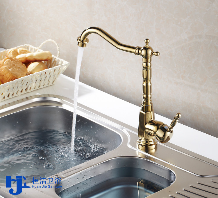 Hwan cleaning gold kitchen tap hot and cold copper washing basin swivel tap kitchen kitchen basin sink water cage head