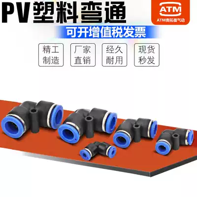 Pneumatic trachea hose Bend through docking quick plug connector Plastic quick adapter PV4 6 8 10 12 16mm