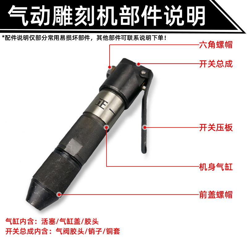 Pneumatic engraving machine accessories for a pneumatic engraving machine