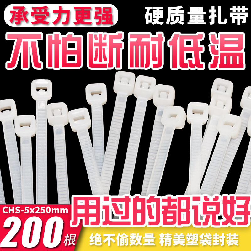 Long iridescent strap 5 * 250 fixed buckle self-locked nylon tie plastic ties 200 strips of white wire ties