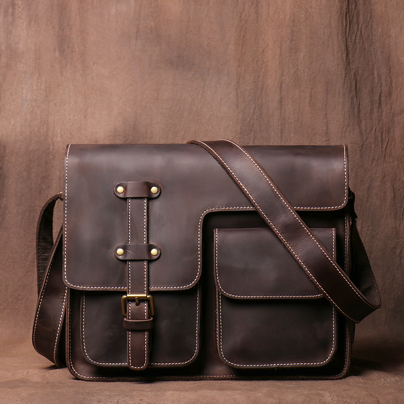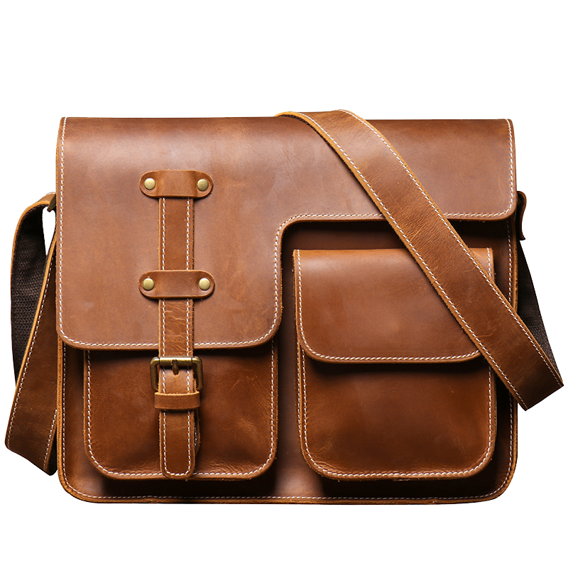 Original top layer cowhide men's bag handmade retro shoulder bag casual crazy horse leather messenger bag Cambridge bag trendy