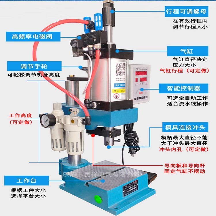 Single column pneumatic punch press Small cylinder press Desktop 500 kg bearing riveting pressure gas beer machine