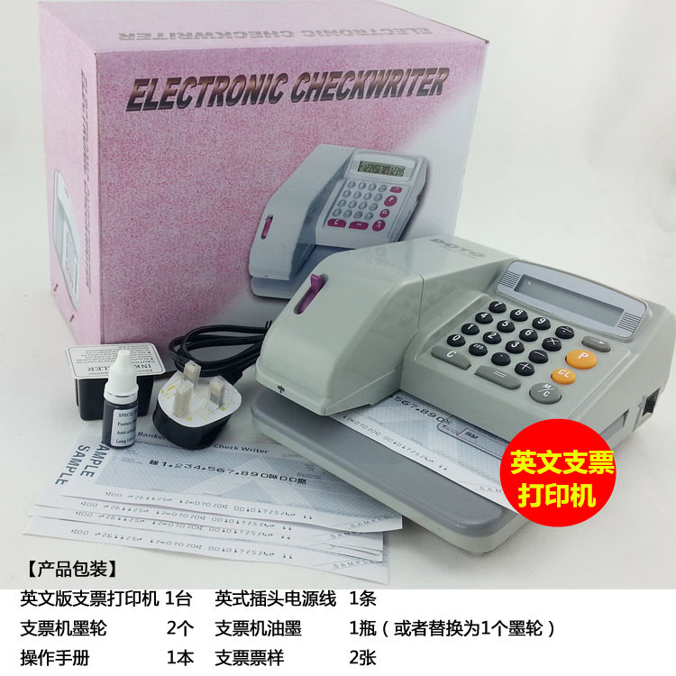 Multi-country English check printer Malaysia Hong Kong US Singapore checkwriter UK plug