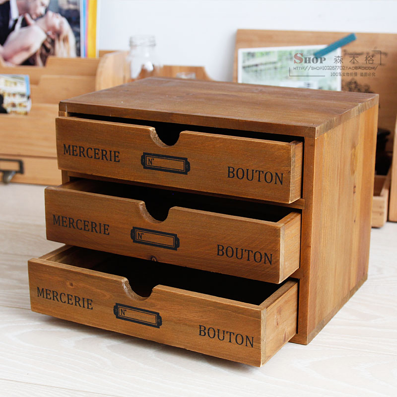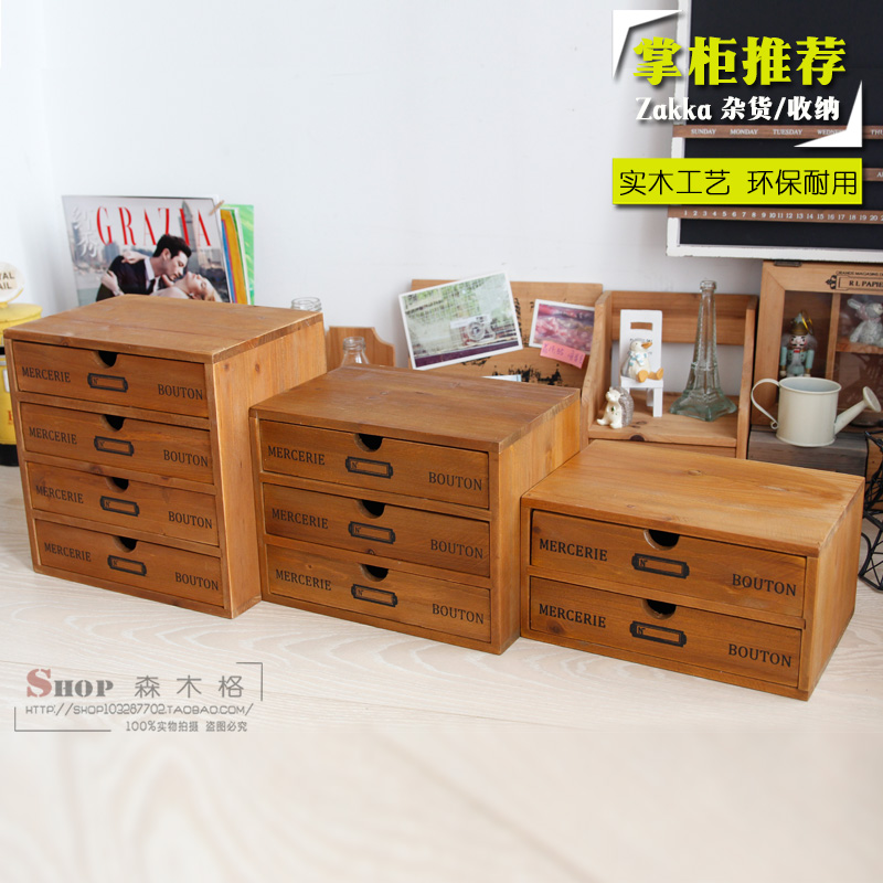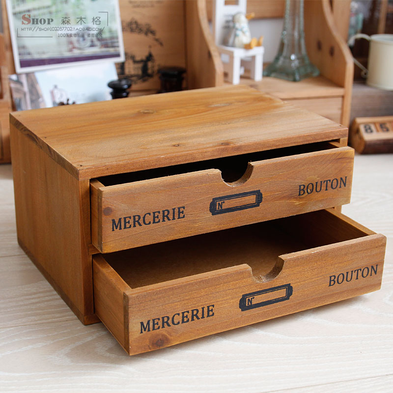 zakka desk top make old storage box lipstick drawer cabinet sundries storage box wooden cosmetics sorting rack