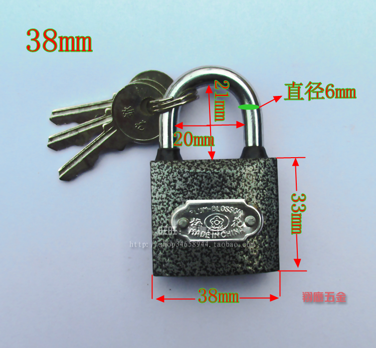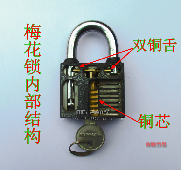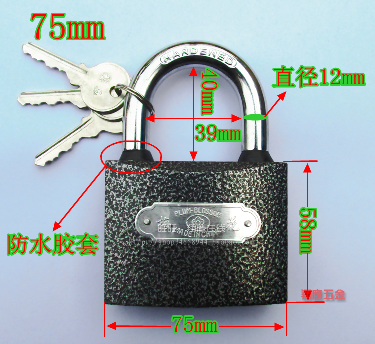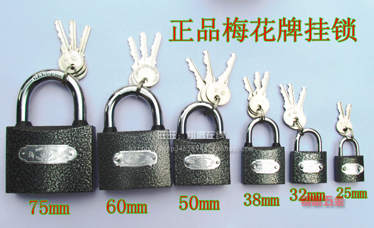 Plum straight open padlock thick pull light copper core waterproof through open iron lock safety burglar-proof padlock warehouse lock