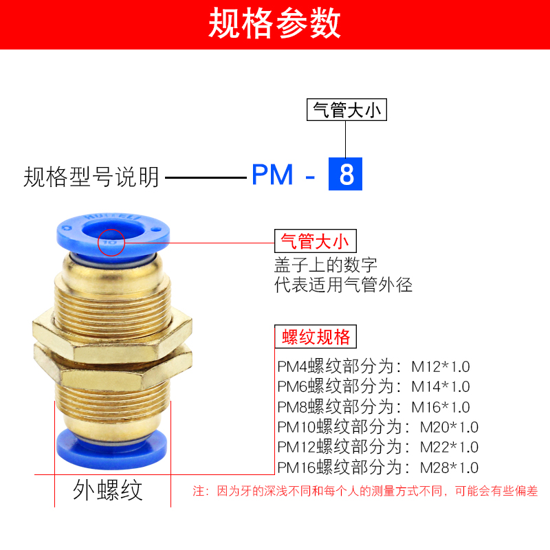 304 stainless steel external thread pneumatic trachea copper quick insert quick joint PM4 6 8 10 12mm separator straight