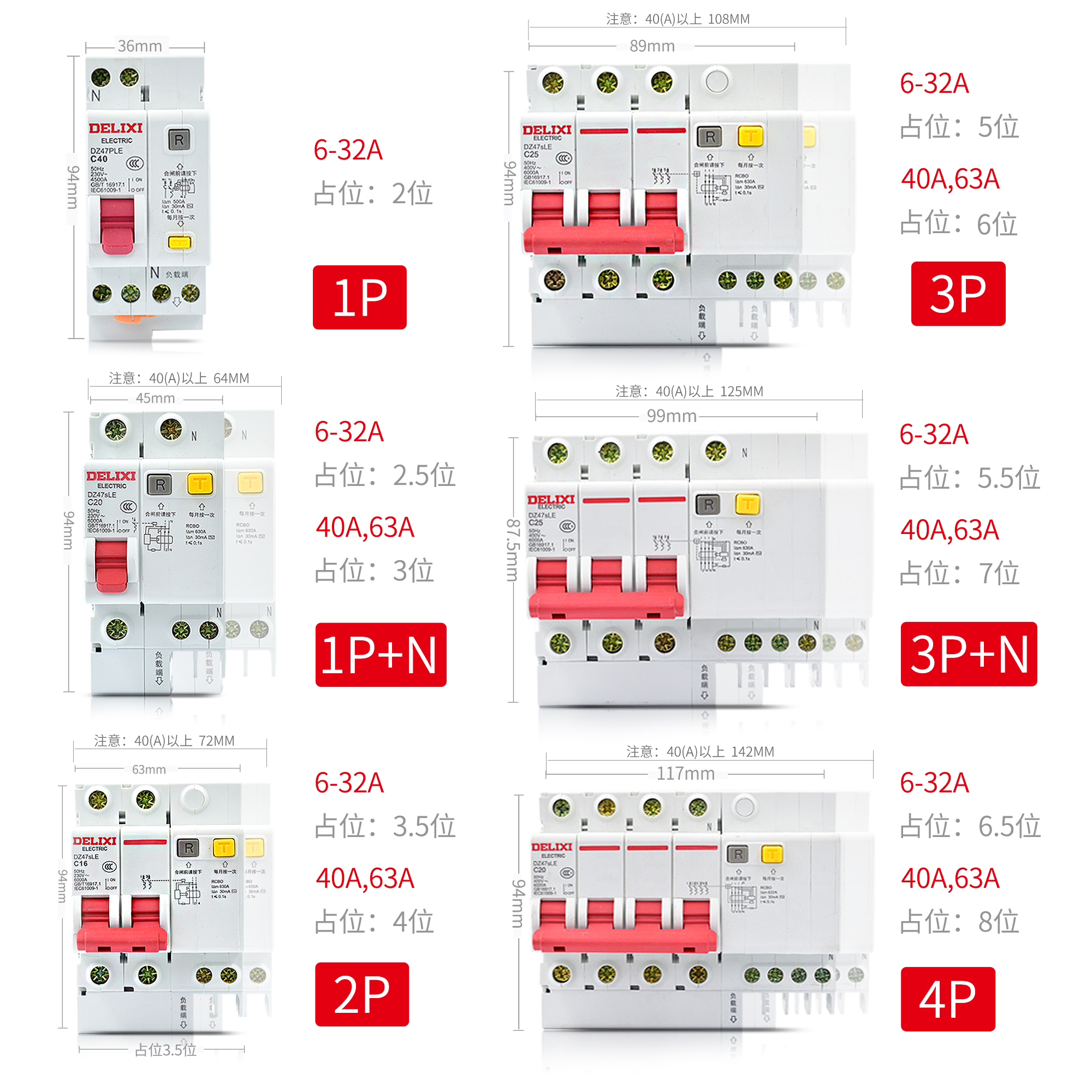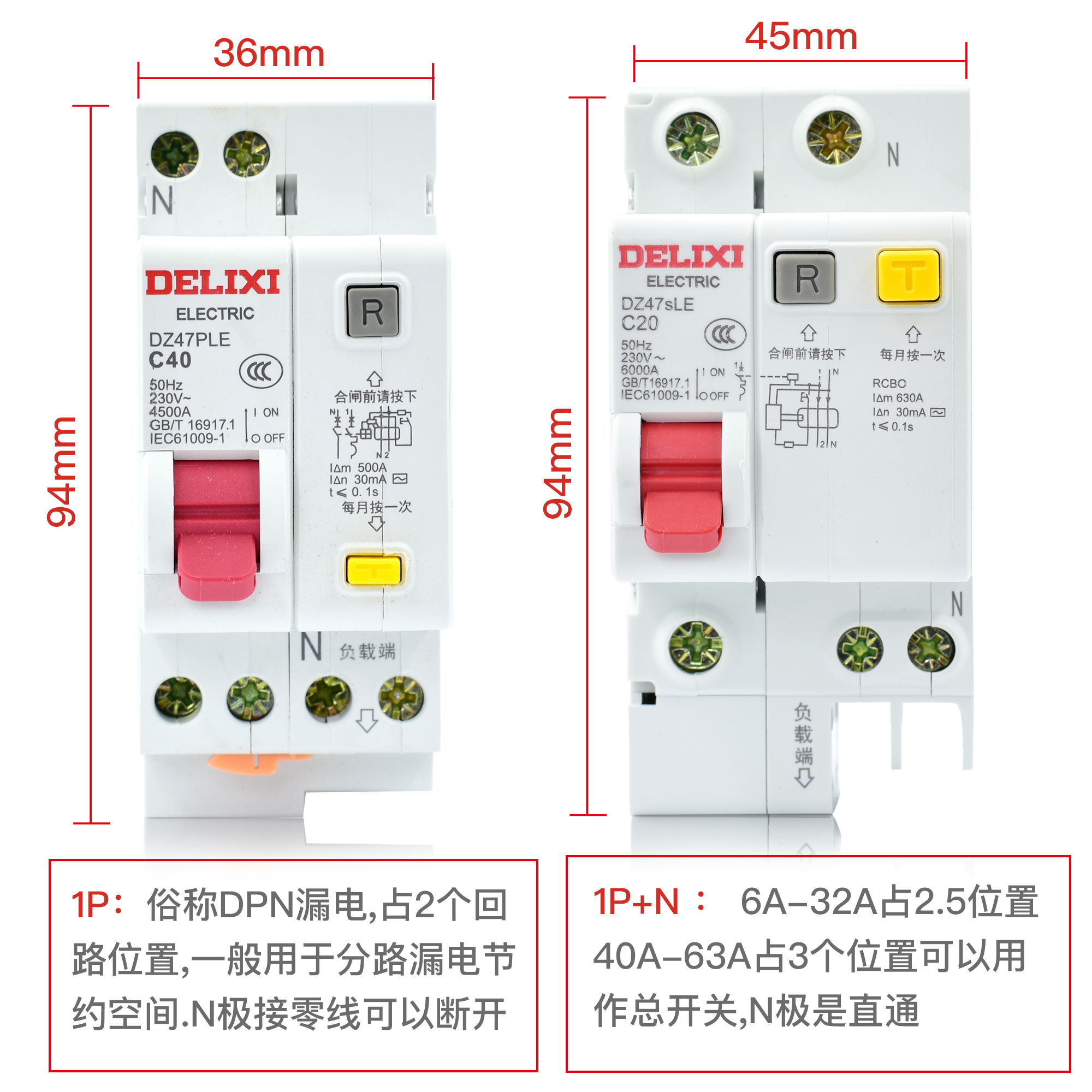 Delixi miniature circuit breaker DZ47 household switch 1 2P63A total air switch with leakage protector