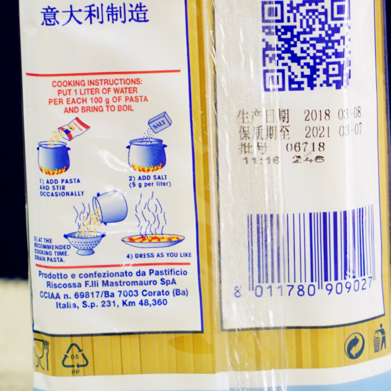 Imported spaghetti Osa brand No. 4 straight face 500g Molly same factory-produced macaroni in more than 5 provinces