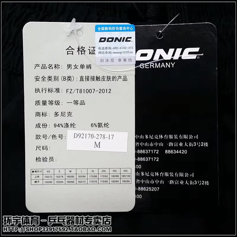DONIC 92170 table tennis shorts Sports shorts Quick-drying perspiration fabric