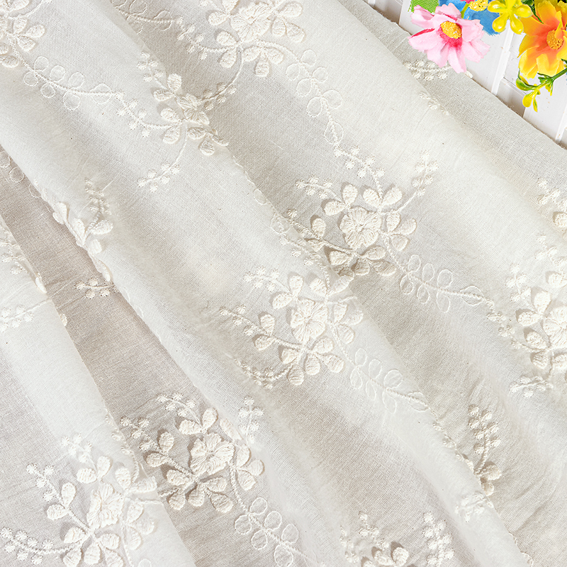 1043815B-9 High-quality cotton full-width embroidery new fashion clothing curtain fabric three-dimensional small flower