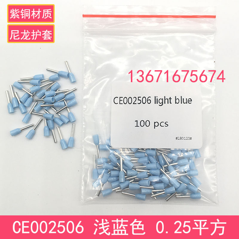 European tube terminal CE002506 E0206 0 25 square light blue small black clip terminal