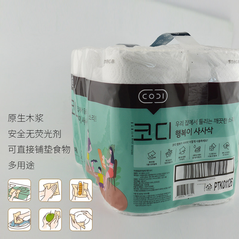 South Korea Import Polyester High-end Kitchen Paper Towel Suction Oil-Water Paper Rag Original Wood Pulp Food Grade no Fluorescent Agent Cuisine Paper
