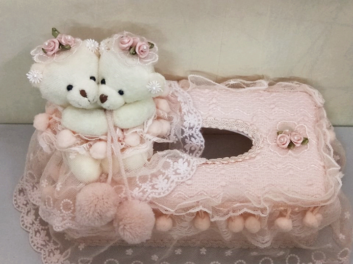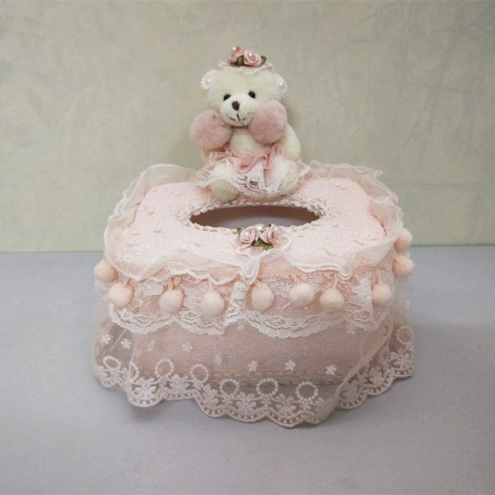 Pink Lace Tissue Box Car Home Use Fields Garden Eu Style Cute Little Bear Cloth Art Restaurant Paper Towels Box