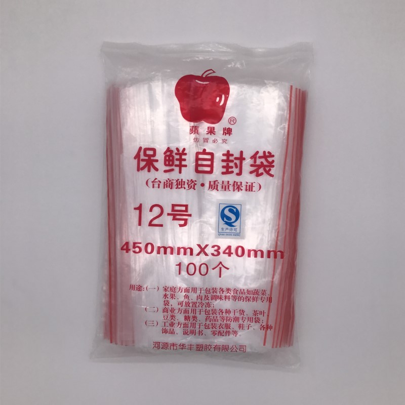 Clip bag Apple 12 peself-sealed bag 34*45 sealed food packaging bag PE sealing bag plastic