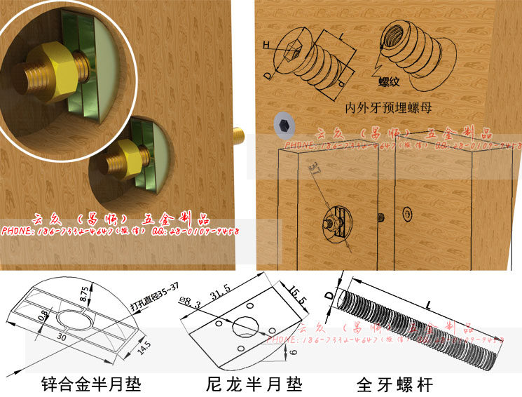 Headless dental rod double - head dental staircase accessories screw connecting screw furniture hardware dental rod