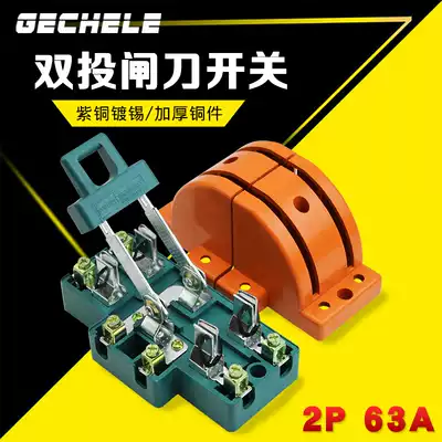 Double-throw two-way knife switch 2P 63A household 220V copper tin-plated reverse double power switch switch