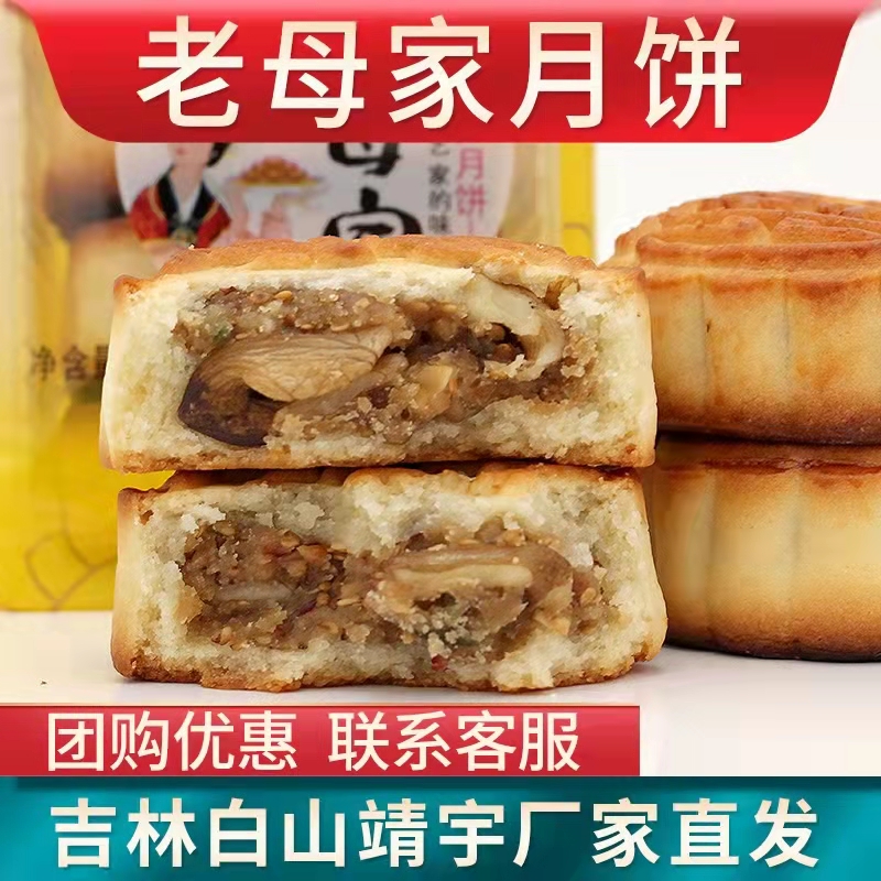 The old mother's five-ren moon cake Jilin Baishan Jingyu old-fashioned Wuren bean paste, black sesame, jujube, Suzi, egg yolk and pine nuts
