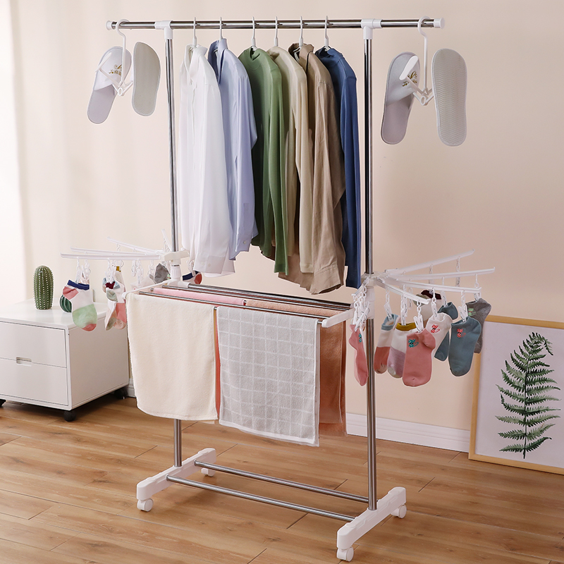 Clothes rack Floor-to-ceiling single pole folding indoor telescopic simple drying rack Balcony drying rack Household bedroom hanging rack