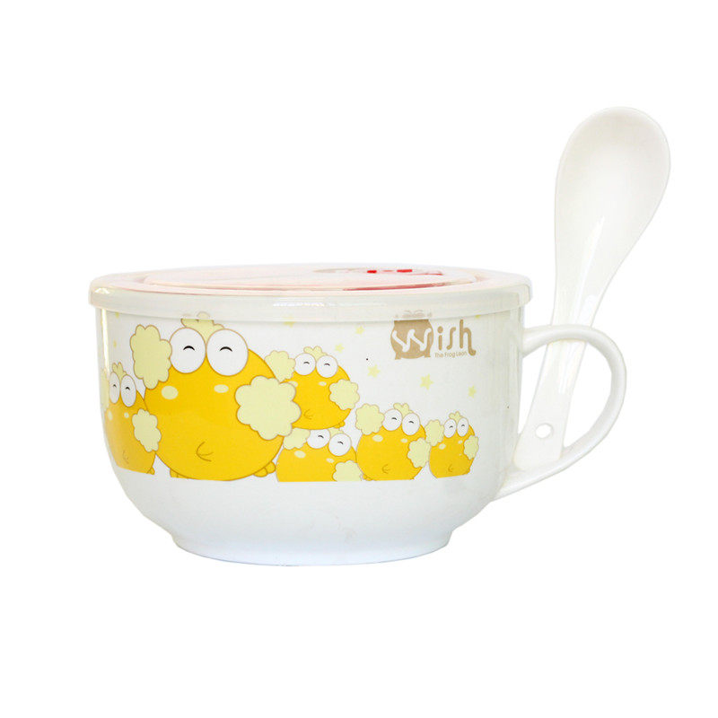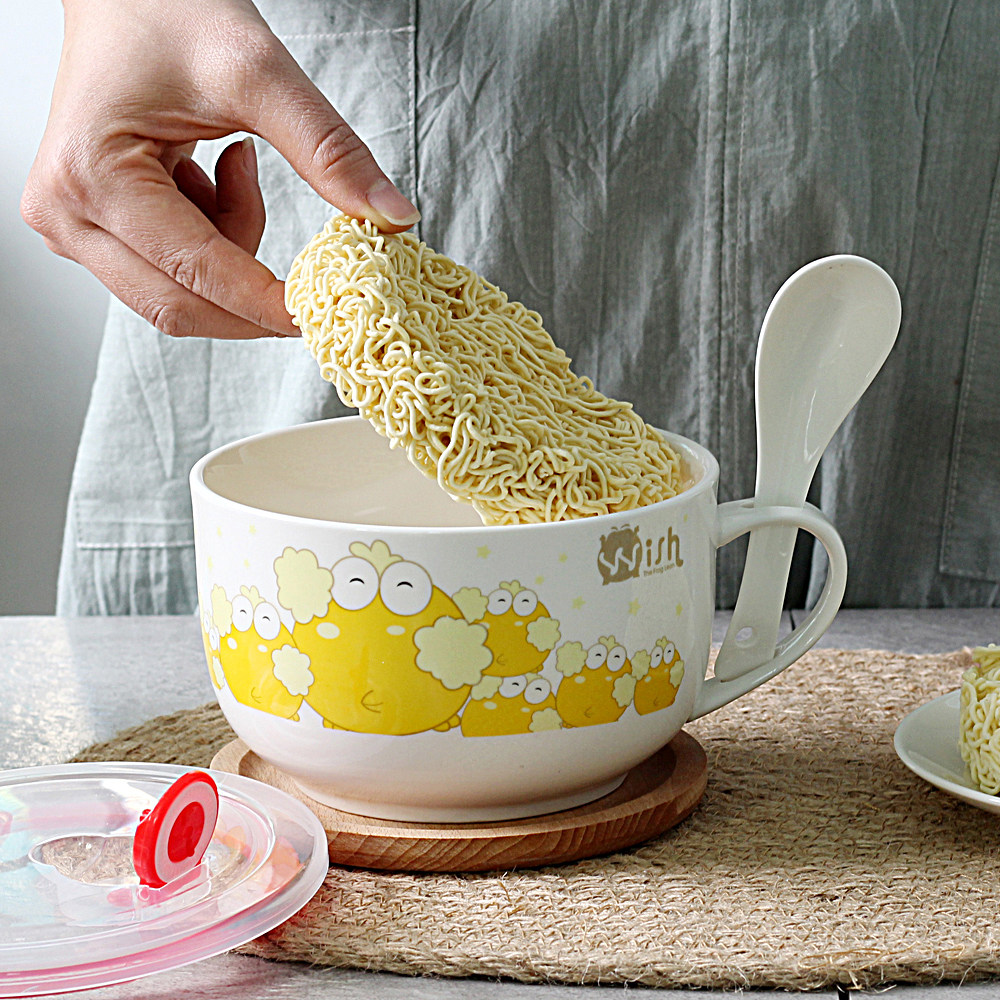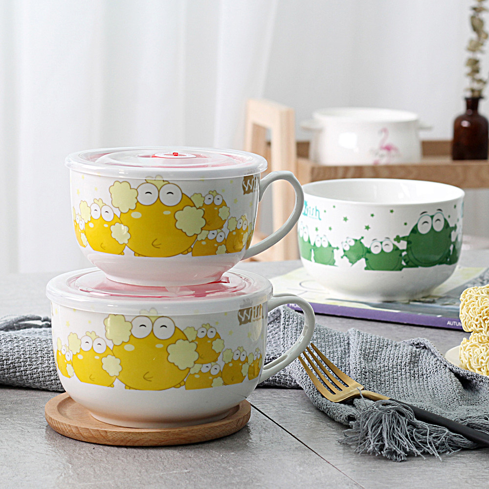 Bubble Noodles Bowl MICROWAVE OVEN WITH LID WITH LID BRING THE SOUP CONGEE BOWL REFRESHING LUNCH SEALED LUNCH BOX CERAMIC DORMITORY BREAKFAST BOWL