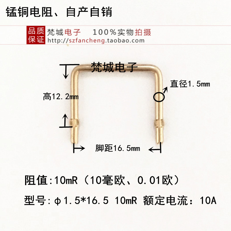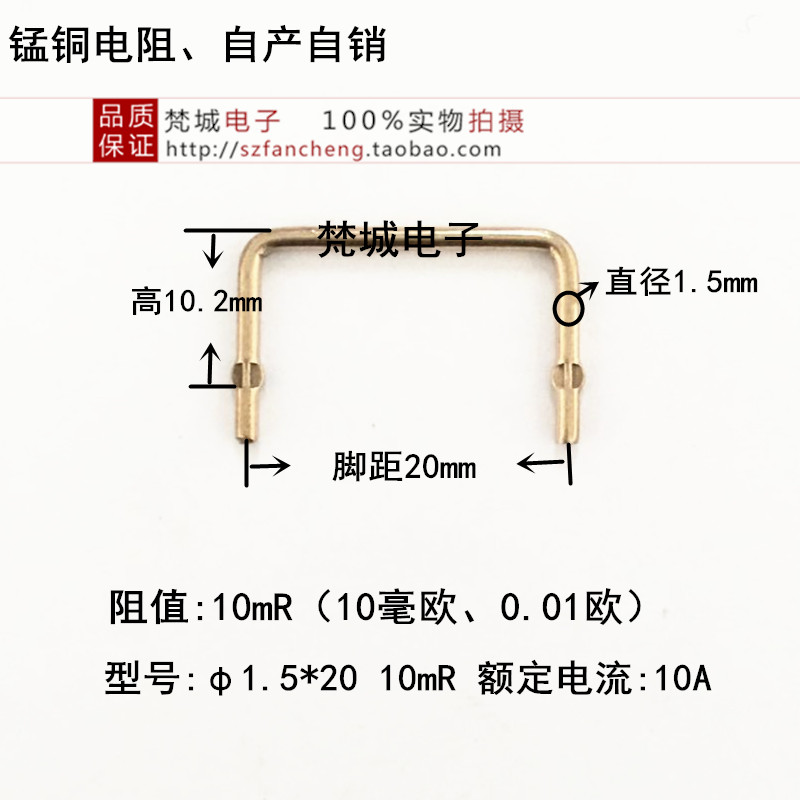 Manganese copper resistance sampling resistance 10 m€ 0 01R 10mR foot distance 10mm wire diameter 1 5mm manganese copper wire