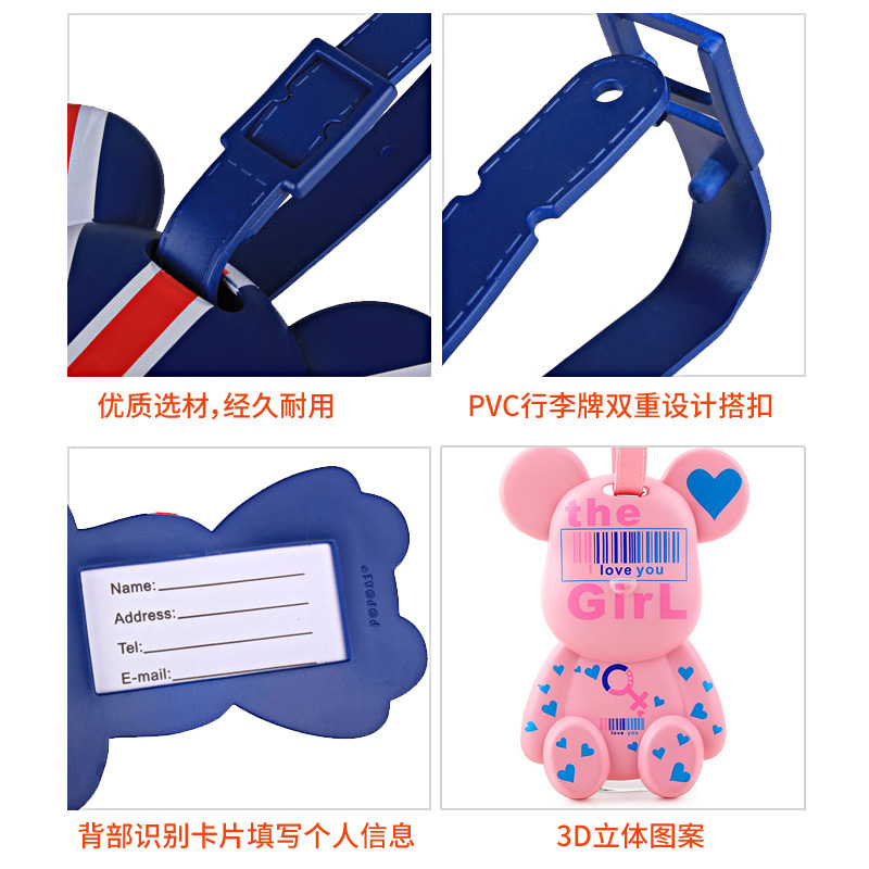 Luggage tag Korean version of violent bear creative cartoon trolley box tag luggage shipping card Travel business supplies