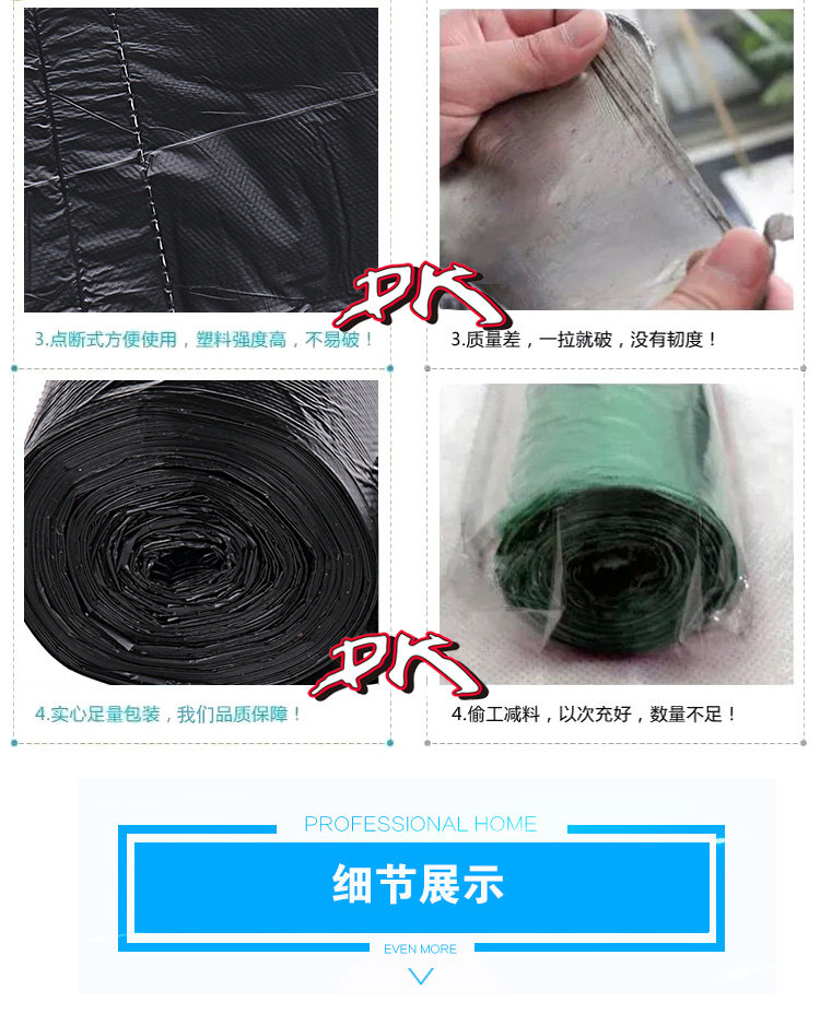 Garbage bag household thickened black disposable small large garbage bag kitchen continuous roll plastic bag point-off type