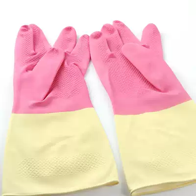 Libing two-color extended gloves for washing dishes kitchen cleaning housework gloves latex rubber gloves