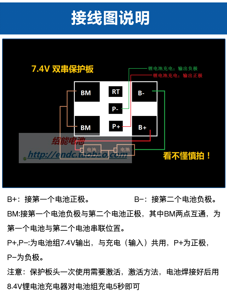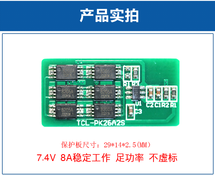 Two - section 7 4V lithium battery pack 8 4V protective board two - series of 8A stable working current anti - charge and discharge short circuit