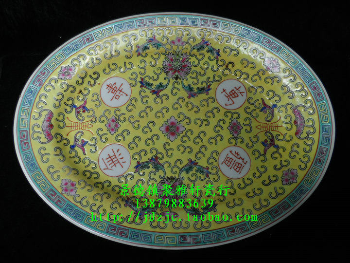 Bag Old Jingdezhen 567 Cultural Revolution Old factory Porcelain Handmade Powder pink yellow Wanshou No Xinjiang 12 inch Oval Collection Enjoy tray