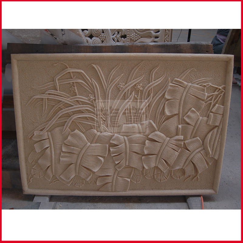 Upper Sea Dragon Seal Sandstone Relief Wall Decoration Background Wall Dining Room Relief Sandstone Decoration Painting-Flower Leaf Wall Decoration B
