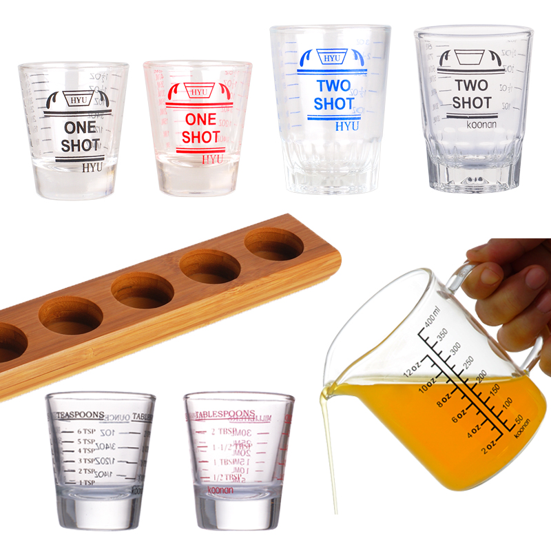 KN-4 scale glass measuring cup -30ml (red line) KN-glass measuring cup -90ml (blue line) bamboo -45ml oz cup holder KN-glass measuring cup -45ml (red