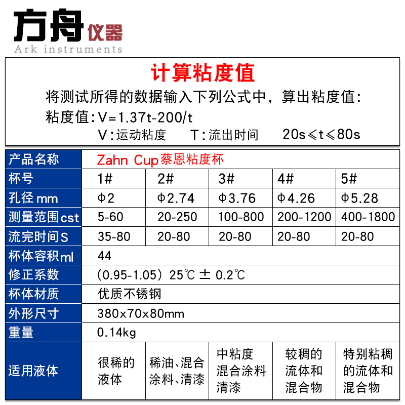 Cai En cup Paint ink viscosity cup ZAHN Chai's Cup No 2 outflow cup Viscosity measuring cup Portable viscometer