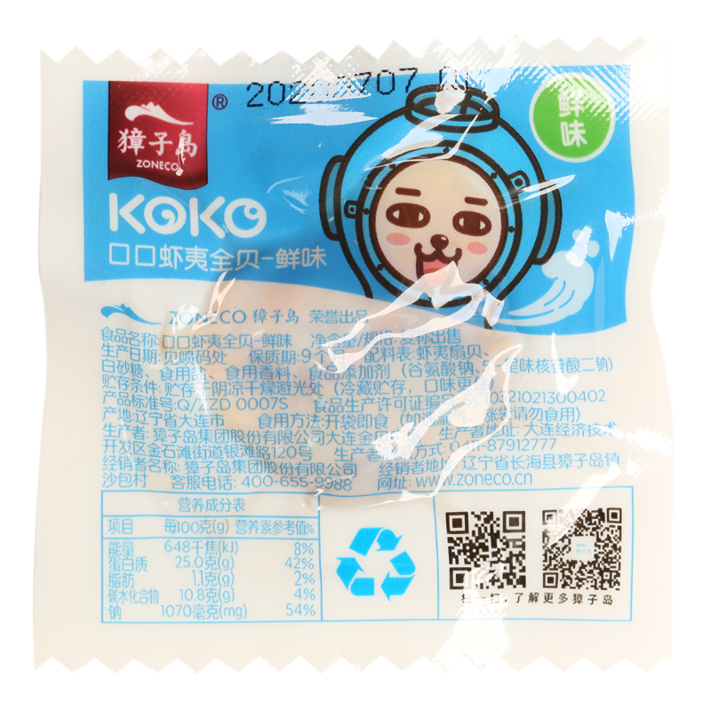 Dalian specialty Zhangzidao open bag ready-to-eat scallop meat 500g seafood snack spicy Ezo whole shell is roasted yuanbei