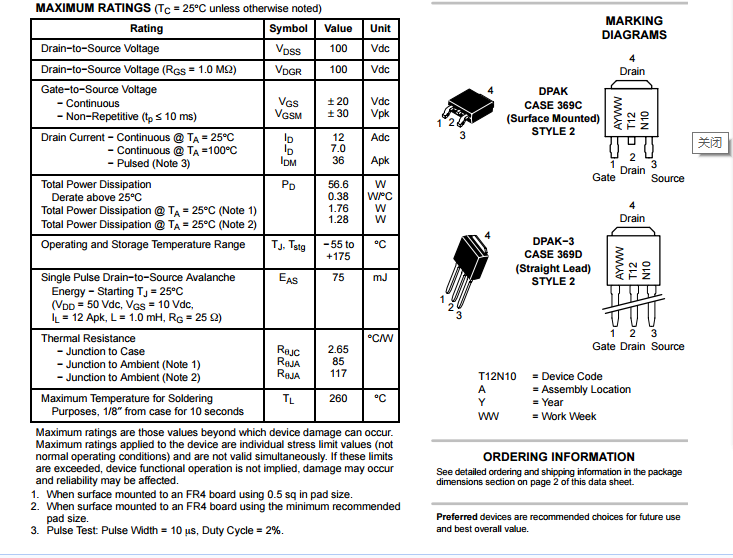 NTD12N10T4G T12N10G field effect tube MOS tube 12a100v patch TO-252 brand new