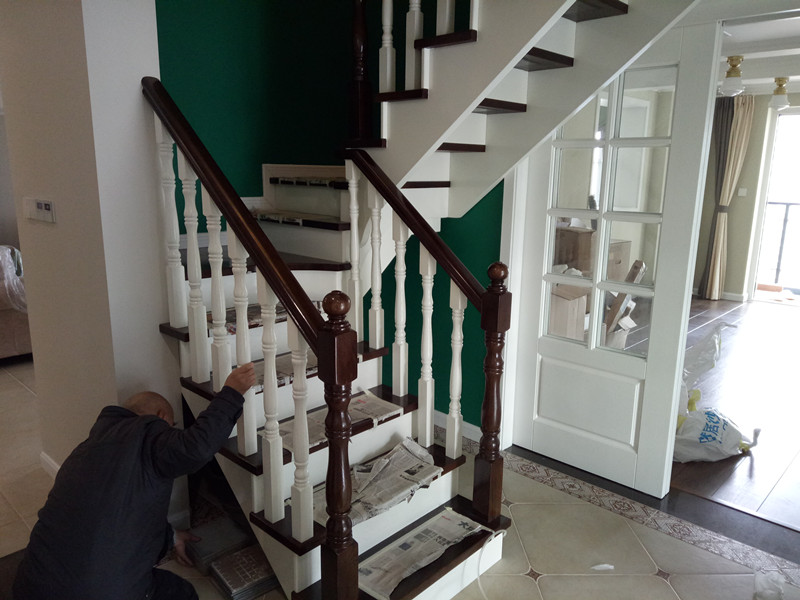 Stair solid wood handrail duplex steel wood loft spiral staircase interior whole house custom Chengdu factory direct sales