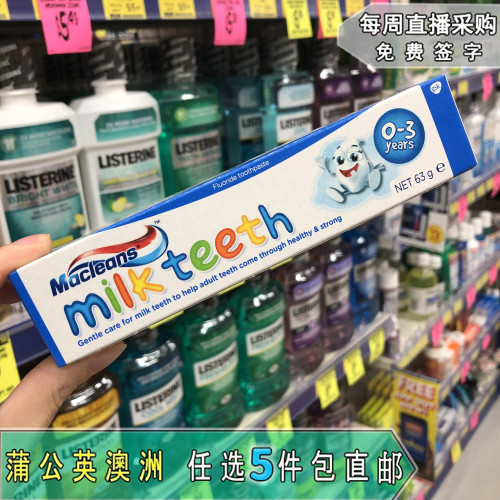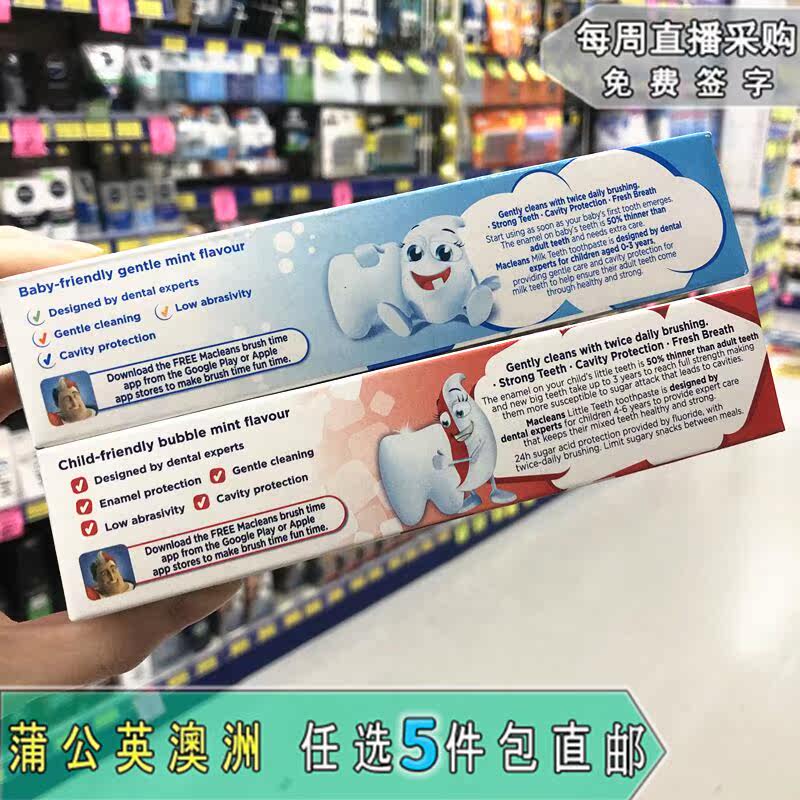 Australian Macleans children toothpaste 0-3-4-6-year-old baby toothpaste with low fluorine swallowing for anti-decay