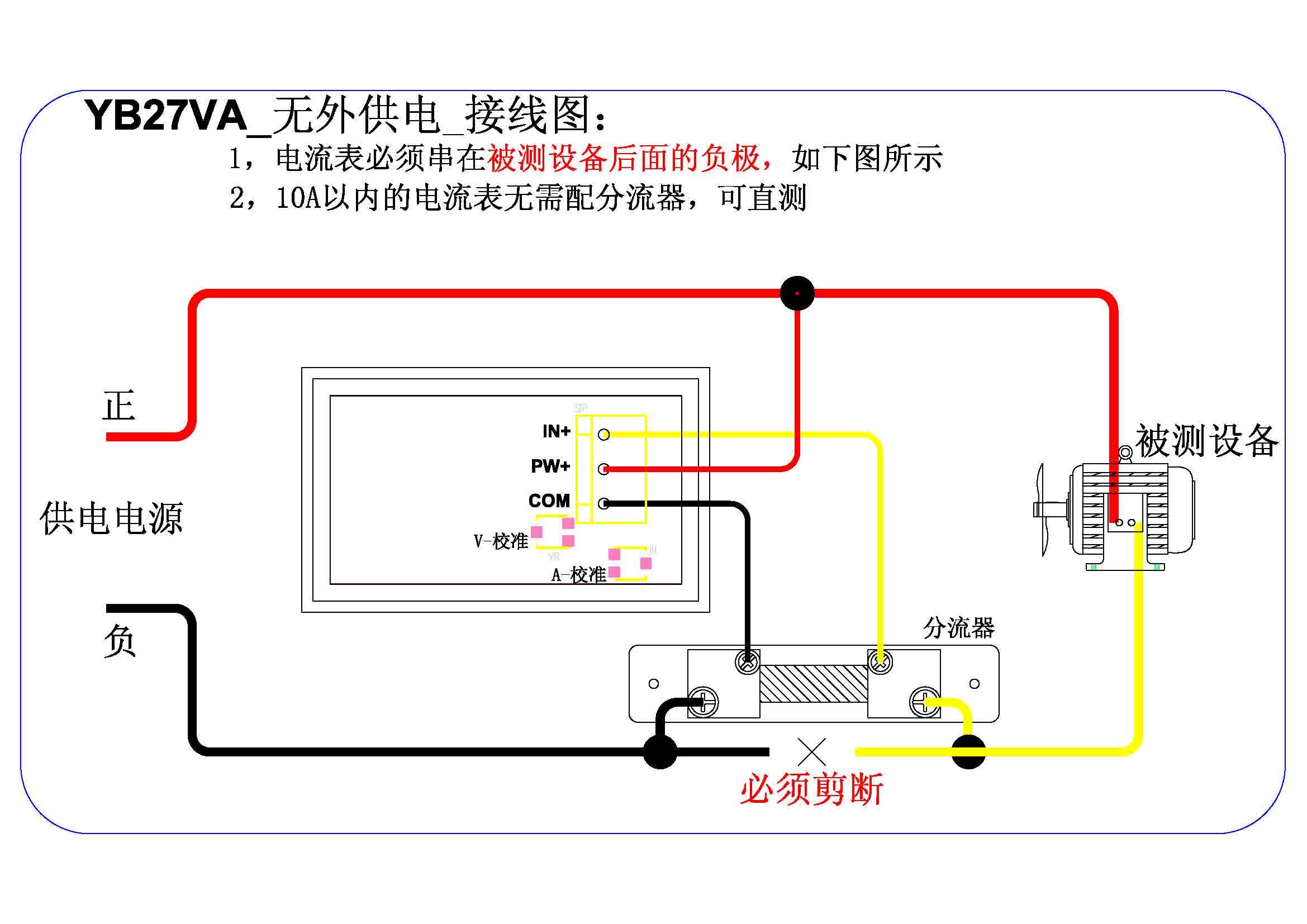 YB27VA three-wire DC digital voltmeter ammeter head double display digital display DC3 5-30V ammeter 10A
