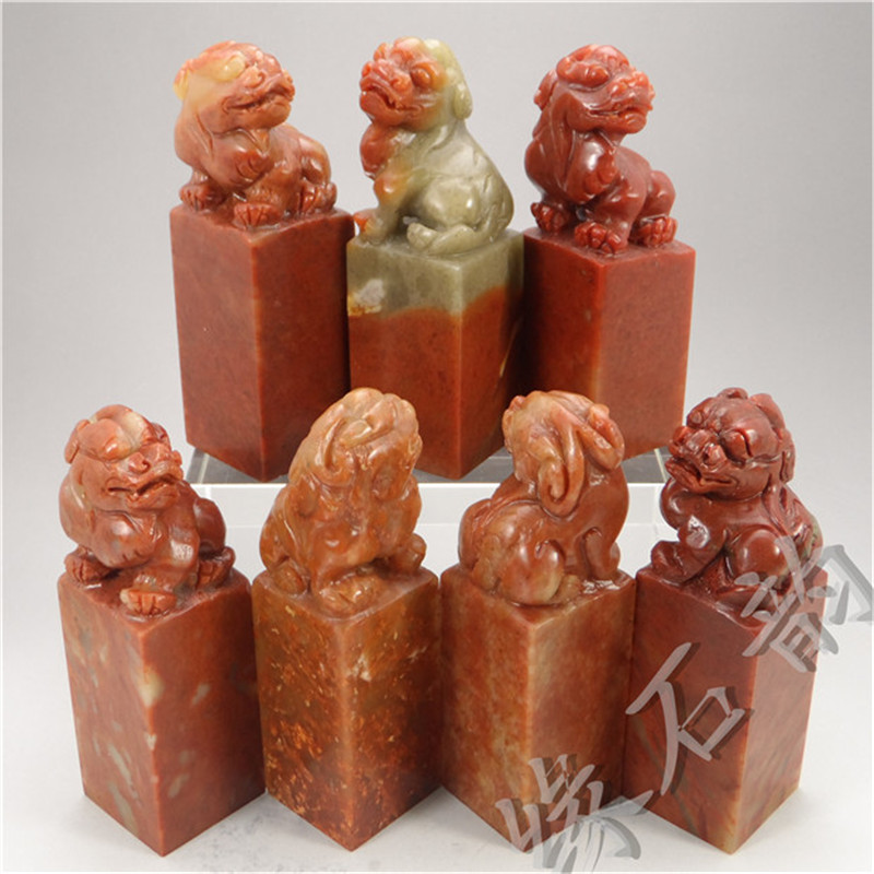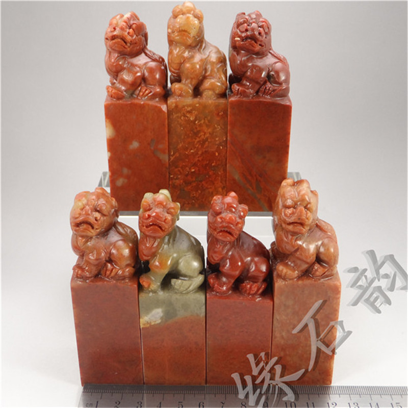 Zhejiang Redstone 3x8-10cm Ancient Beast Button Head Seal Collection Shoushan Stone Practice Stone Seal Cutting Material Seal Stone