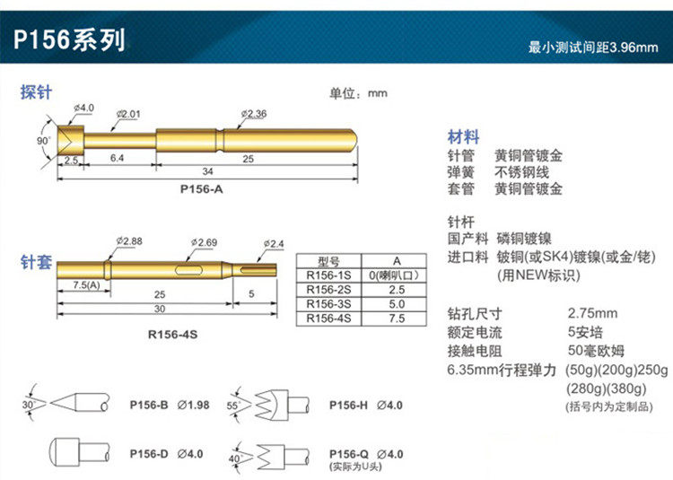 P156-B Huong Probe 2 7mm Spring Electronic thimble pointed probe functional test quality assurance
