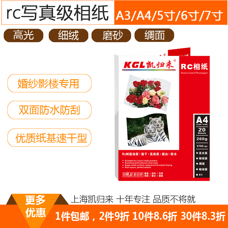 Kei attributed to RC phase paper 6 inch 5 inch 7 inch A4 photo paper A3 high light waterproof suede face frosted silk face album paper 260g color inkjet print sheet machine RC phase paper 4r photo paper 3R wholesale