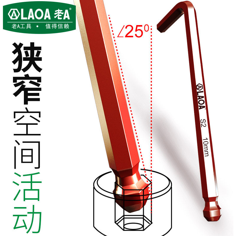 Old A tool S2 High strength 9 pieces Inlet wrench ball head Inform inner hexagon wrench suit plus long single