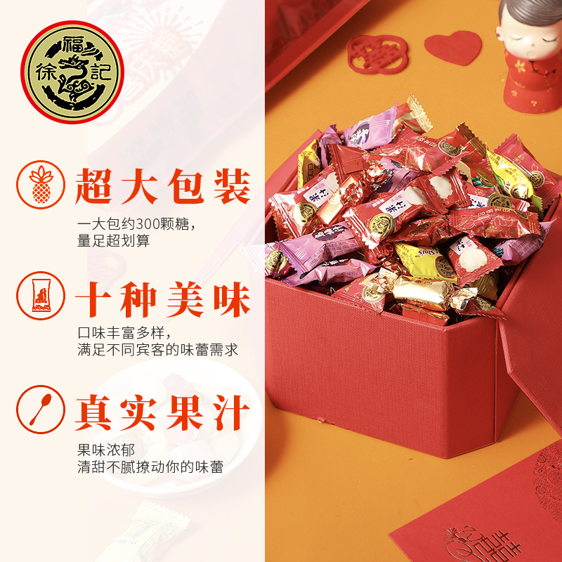 Xu Fuji-3 kg festive candy snack products spree Toffee hard candy Fruit sugar Wedding celebration Bulk leisure