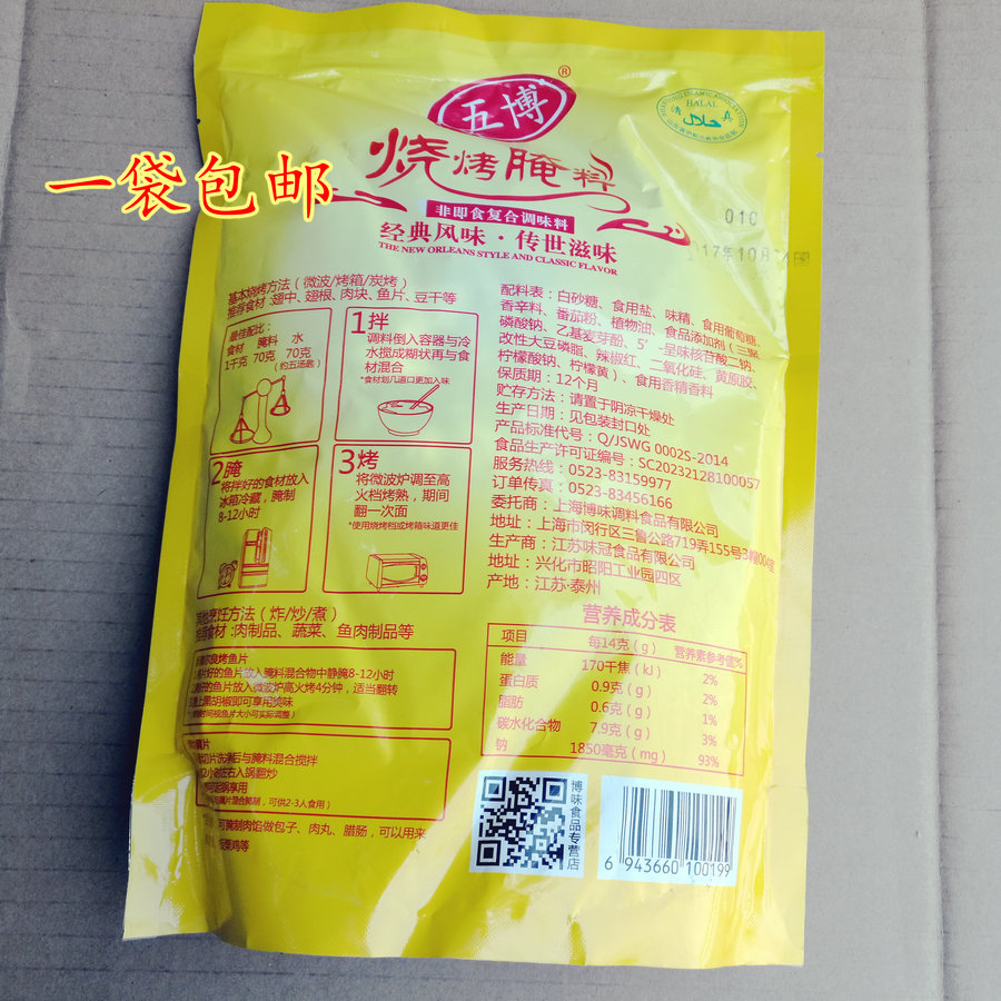 A bag of five - box flavor 1kg barbecue powder salted sauce of steak wings barbecue