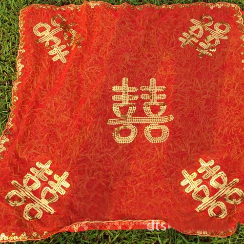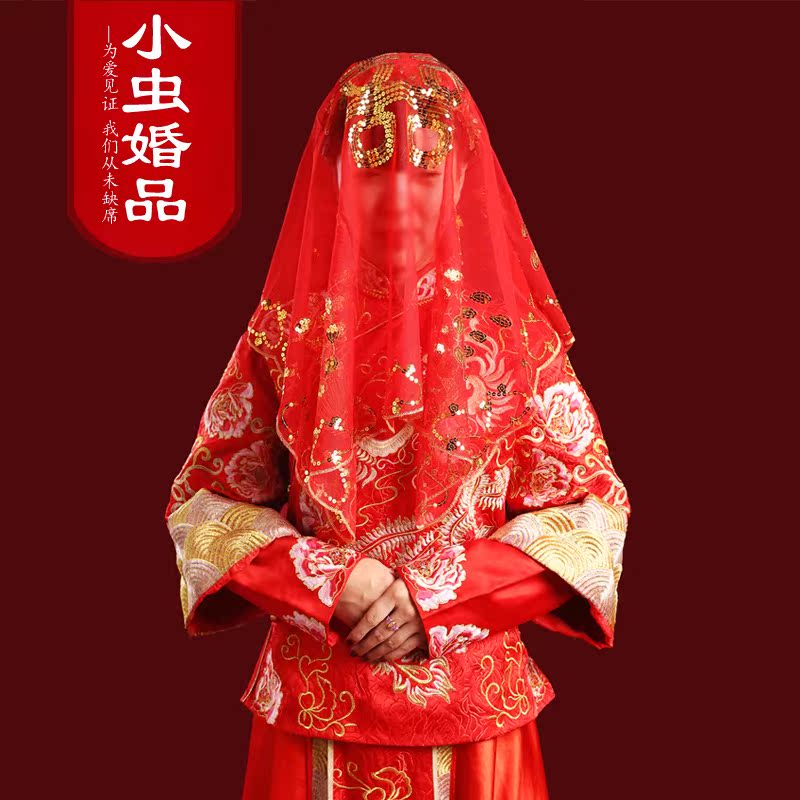 Wedding Supplies Red Head Yarn Red Cover Head Bride Headscarf Red Bright Sheet Big Wedding Scarlet Dance Performance Blush Red