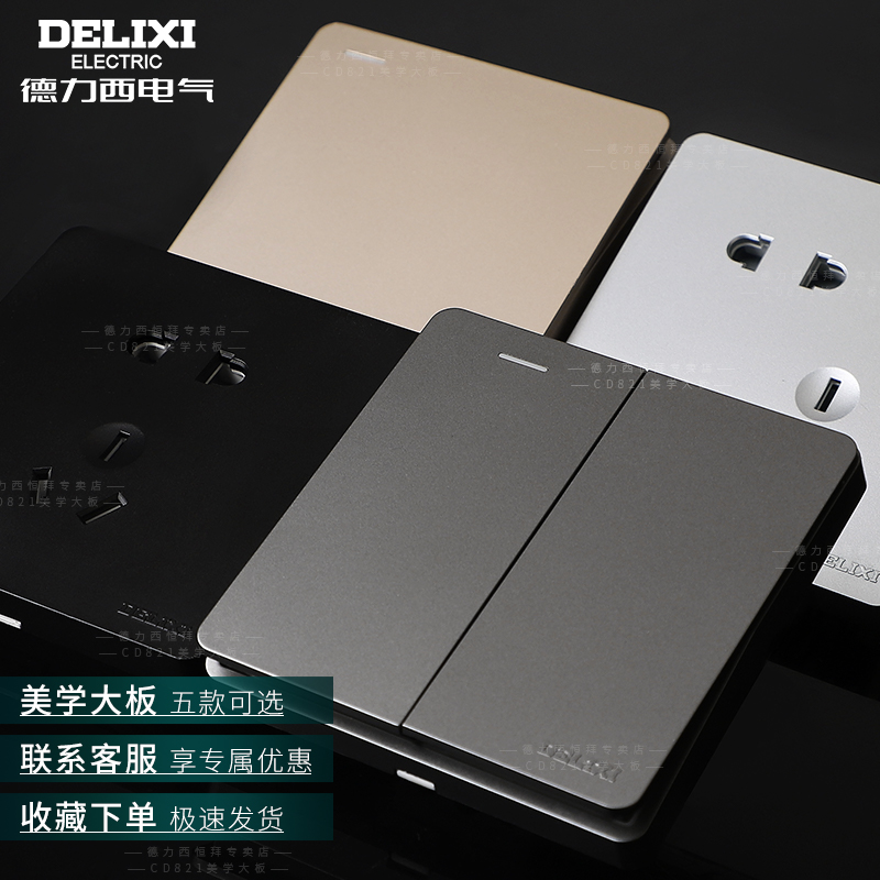 Deli West with switch socket wall power Gray panel one open five-hole household 86 type concealed gray double usb